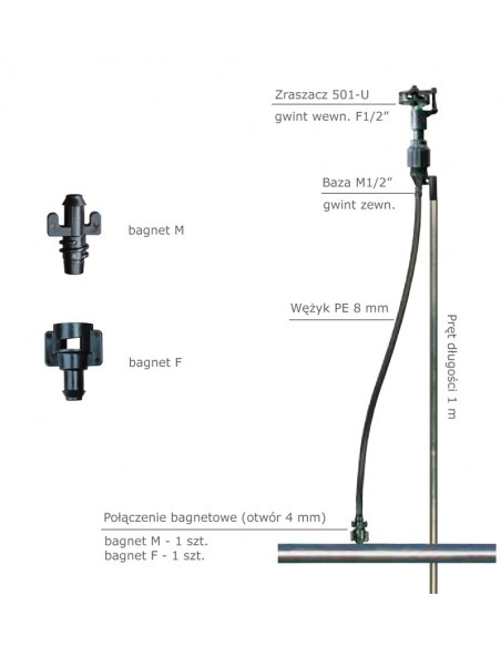 Przelot 17 x M1/2" z gwintem zewnętrznym służy do połączenia taśmy kroplującej 17 mm z gwintem wewnętrznym F1/2".
