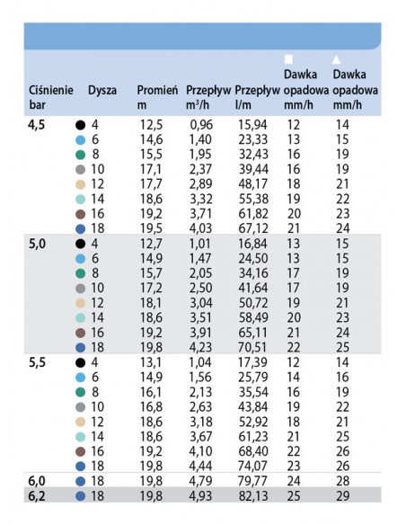 - Zraszacz sektorowy - możliwość regulacji od 40 do 360° - praca „tam i z powrotem”